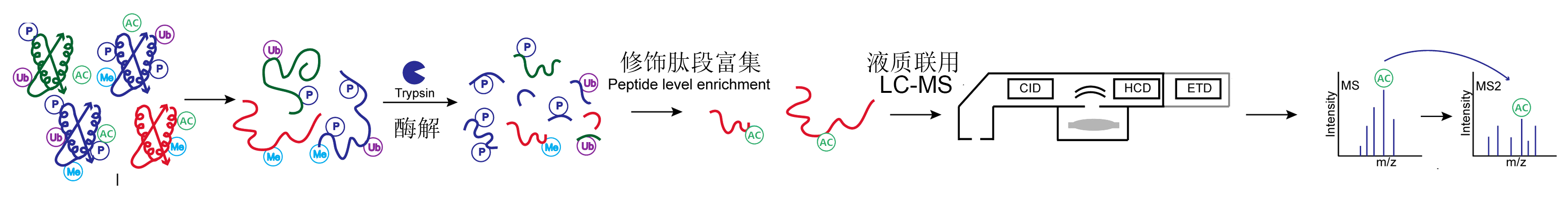 近年来随着质谱技术不断进步与发展,蛋白乙酰化这种重要的蛋白翻译后修饰逐渐被揭开神秘的面纱。通常在乙酰基转移酶的催化下,蛋白在转录过程或后转录过程中发生乙酰化修饰,此乙酰基集团可以被连接在氨基酸的N端,也就是N-乙酰化;或者连接在氨基侧链的赖氨酸残基上。
