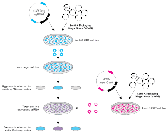 稳定细胞系的构建可以通过使用阳性选择标记物(如 hygromycin、G418/Geneticin、zeocin 和 blasticidin 抗生素耐药性)来实现。选择标记物可以通过与目标基因在同一质粒上(cis 方式)或与含有目标基因的质粒共转染(trans 方式)来传递。cis 方法通常较为简单,并且更有可能产生抗药性稳定转染体,表达目标基因。当目标构建在质粒骨架中不含抗生素耐药基因时,trans 共转染方法是一个很好的选择。在这种情况下,可以将含有5至10份基因表达质粒和1份抗生素选择标记质粒的质粒混合物引入细胞中。这种质粒比例有助于确保所选细胞同时表达目标基因和选择标记物。